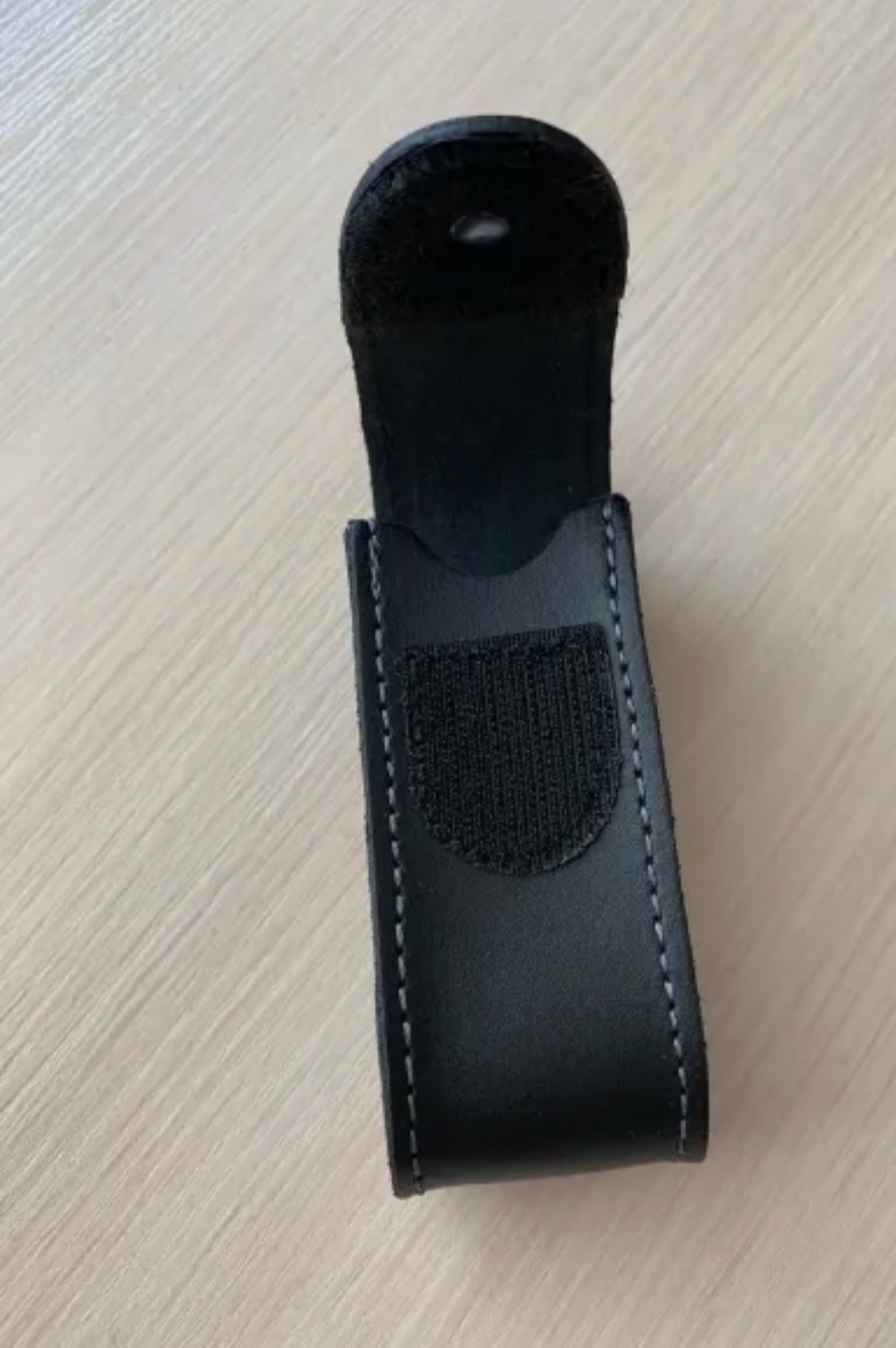 Качественный чехол из натуральной кожи чёрного цвета. Оснащён уникальным поворотным крепёжным механизмом, позволяющим крепить чехол на ремень как вертикально, так и горизонтально. Поворотная клипса также позволяет снимать/надевать чехол, не расстёгивая ремень.